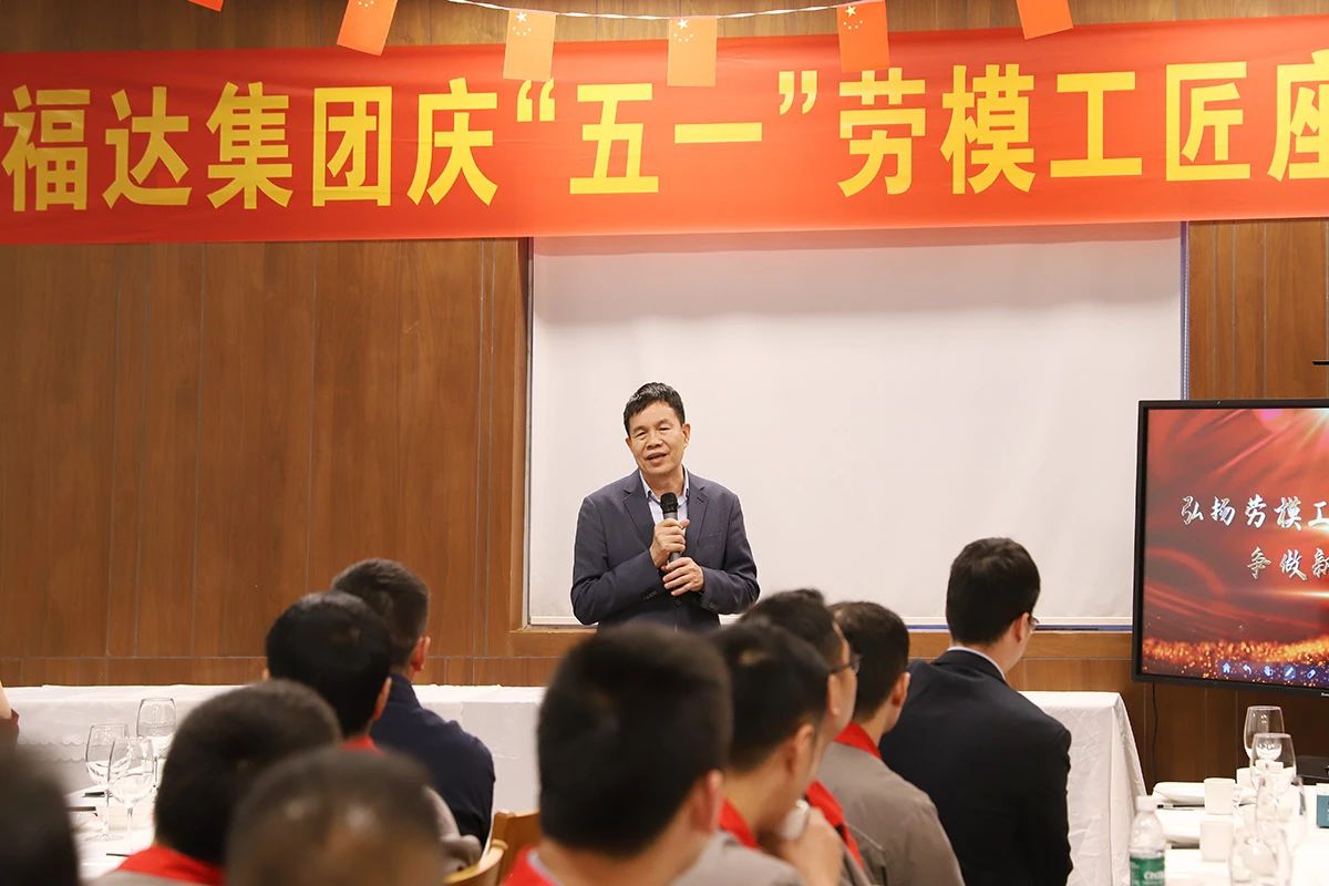 为庆祝“五一”国际劳动节,大力弘扬劳模精神、劳动精神、工匠精神。4月28日,福达集团举办庆 “五一”劳模工匠座谈会,福达集团党委书记、董事长黎福超出席座谈会并讲话。福达集团各业务板块劳模工匠代表参加座谈。