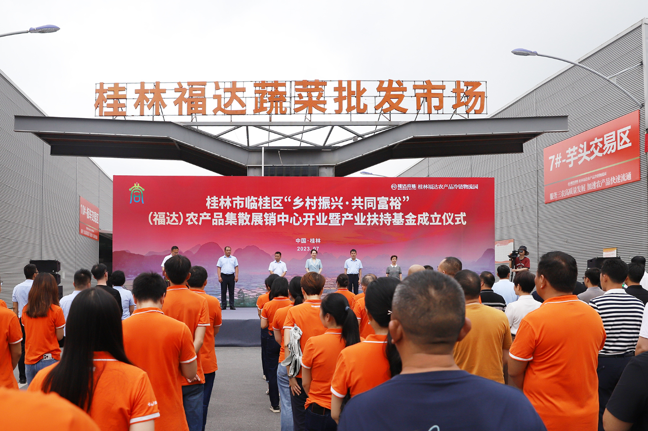 7月20日,桂林市临桂区“乡村振兴·共同富裕”(福达)农产品集散展销中心开业暨产业扶持基金成立仪式在桂林福达农产品冷链物流园举行。临桂区委副书记谢静,区人大常委会副主任蒋福军,区政协副主席欧翠兰,福达集团党委书记、董事长黎福超,桂林福达冷链总经理王猛出席仪式,临桂区四家班子分管领导、临桂区政府有关部门领导、福达集团和桂林福达冷链干部员工、农产品商户、采购商、媒体记者等约200人参加仪式。