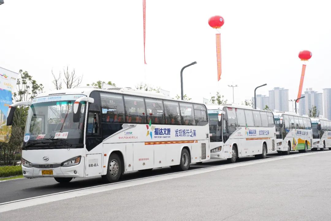 在全体工作人员的团结配合下,本次旅游展接待动用会务车辆50余台,出车100+车次,派遣专业司机40余人、骨干导游30余人、专业政务会议接待团队10人,共接待领导嘉宾350余位。