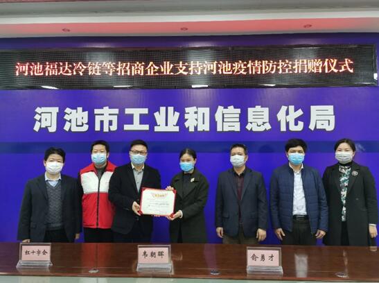 抗击疫情,大爱无疆 。自都安县疫情发生以来,河池福达农产品冷链有限公司时刻关注疫情救援工作开展进程。当得知都安县人民医院面临救援物资紧缺后,2月14日,公司紧急筹措了10000个医用防护口罩(包含9400个医用防疫口罩、600个KN95医用防护口罩)等医疗物资,驰援都安抗“疫”,用最安全、快捷的方式送至抗“疫”前线,为“战疫”胜利尽力加油。