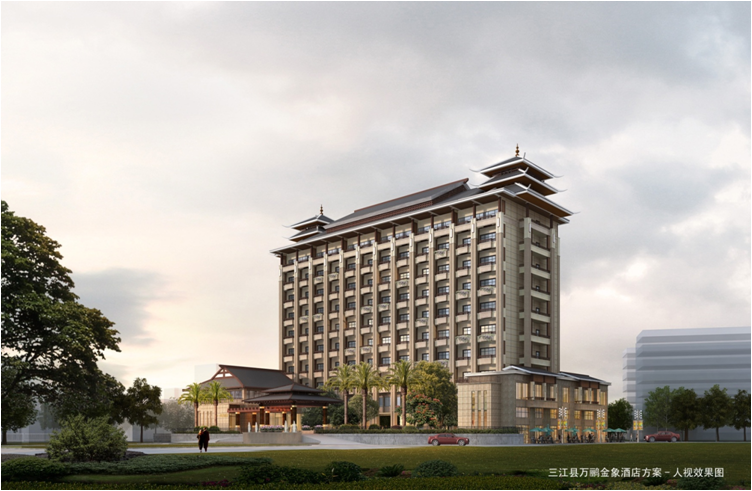 “三江万鹂金象酒店”是集团公司在三江文化旅游开发的重要项目,酒店规划用地面积为4253.83平方米,总建筑面积12070.72平方米,酒店建成后,将成为三江县地标性建筑,雄踞三江县城的制高点,是三江特色高品质的精品酒店,既有侗寨元素民族特色,又具现代时尚文化气息。