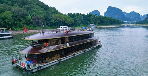 福达文旅旗下桂林福达游船有限公司依托于漓江AAAAA风景名胜区的独特资源,在漓江上运营着多艘三星、四星、五星游船。福达五星超豪华游船外观独特的扁舟造型如同一片飘荡在江面上的树叶,游船内部的装修风格兼顾桂林文化魅力的展示,全景大舷窗,为游客完美展现漓江的百里画卷。游船服务团队将广西特色民族文化融入到服务中,为游客表演民族舞蹈、演奏古筝、展示茶艺,让游客在欣赏漓江美景的同时,也能感受到浓郁的民族文化氛围。